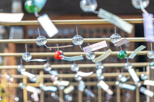 風鈴はやはり風になびいた瞬間を撮らないと涼しそうに見えない。だらりとぶら下がった風鈴の写真では涼がぜんぜん伝わらんもんだ。 動きのない写真から風鈴の涼を感じるには風が吹いているという描写が大切。これだけで写真を見ているだけでも風鈴の音色まで…