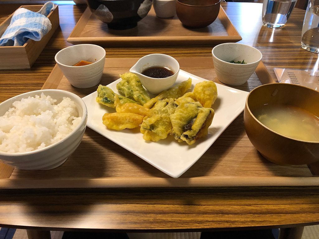 いただいたのは熊野あまごと野菜のフリッター定食~アジアンソース添え~1300円。