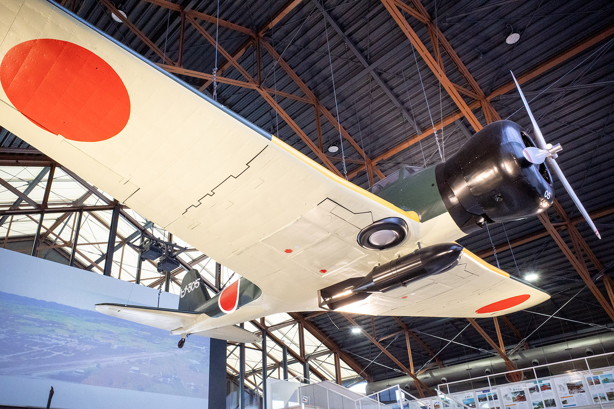 ゼロ戦と比べると全長わずか28㎝ほど長いだけだが、装甲が厚く、出力はゼロ戦の2倍。