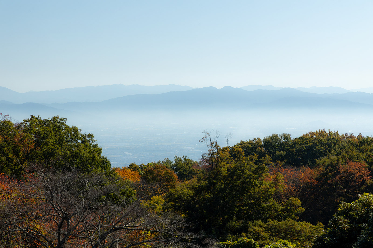 高安山の尾根に白い気象レーダーが見えるが、ちょうどそのあたりに高安城があったそう。