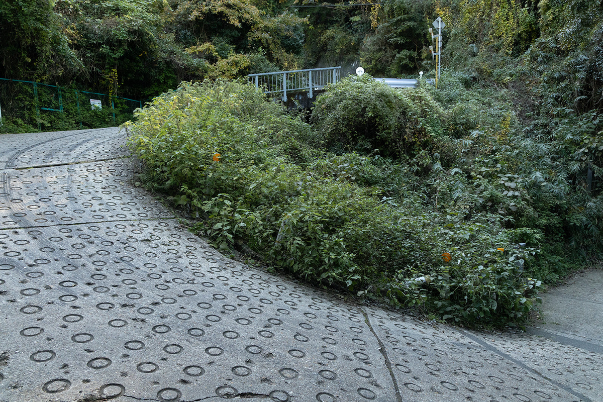 信貴スカイラインにかかる歩道橋を進んで鳴川峠をめざす。